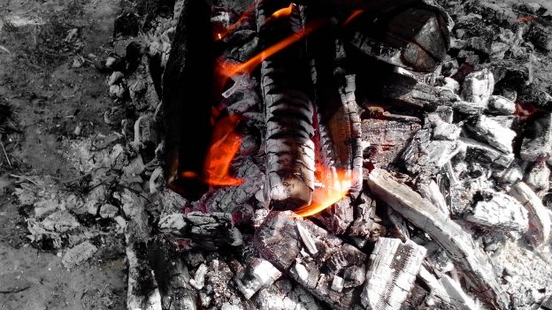 U međuvremenu, izdvojeni ugarak prestao je plamtjeti, snaga mu je jenjavala i uskoro postade hladan i crn. Svećenik ustade ponovo i kliještima vrati ugašeni ugarak u vatru. Trenutak kasnije, on je ponovo počeo gorjeti zajedno sa drugima.