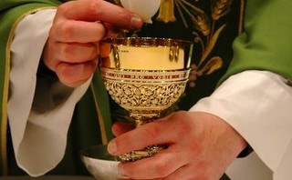 Blagovanje Kristova tijela i krvi, pod prilikama posvećenog kruha i vina, zove se pričest.